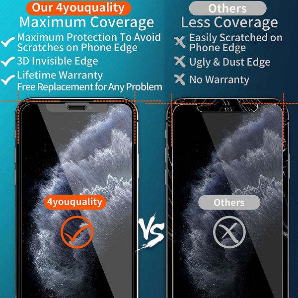 - 【Full Coverage & Case Friendly】- In order to offer maximum protection for iPhone 11 Pro Max/iPhone XS Max, the screen protector covers almost full screen and leaves slight space on edges for your phone case entry WITHOUT lifting up.